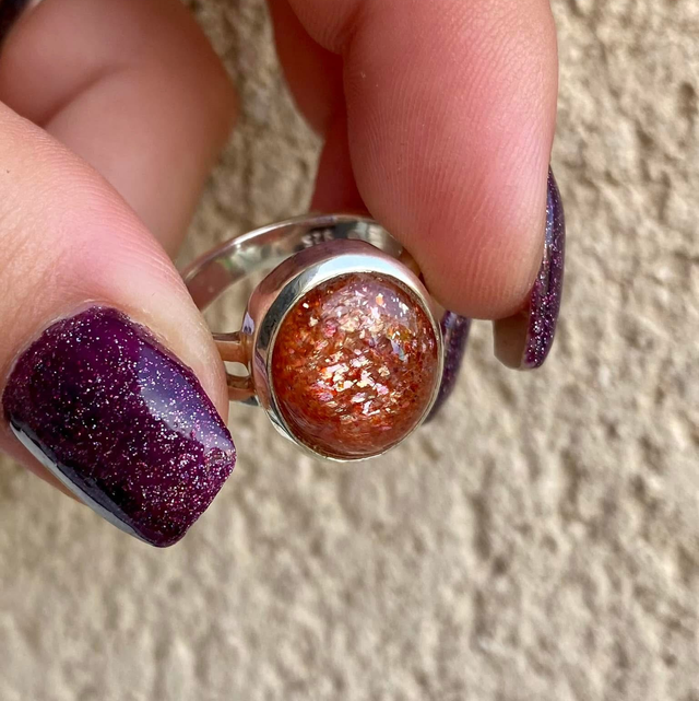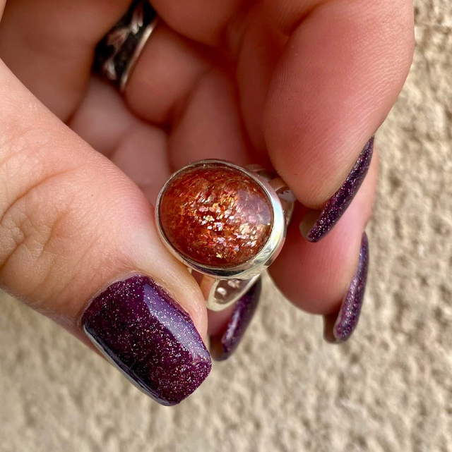 Bague en argent et Pierre de Soleil - Taille 57