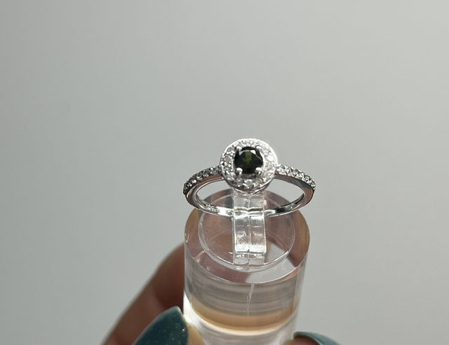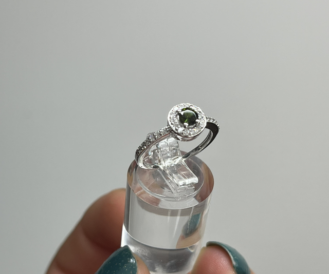 Bague en argent, Tourmaline verte et Zircons - Taille 51
