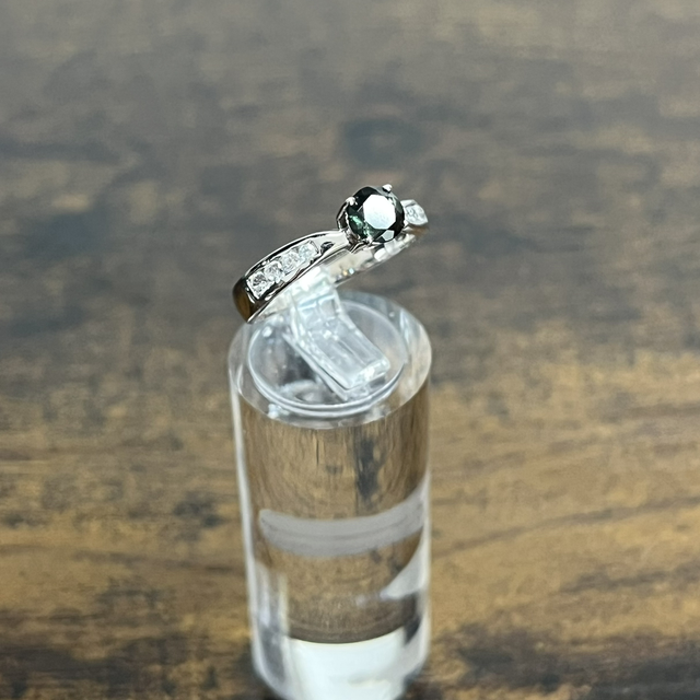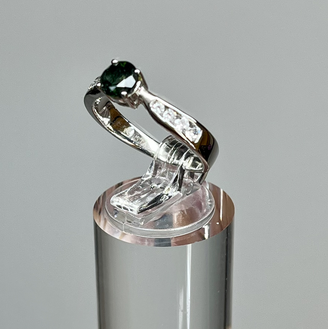 Bague en argent, Tourmaline verte et Zircons - Taille 52
