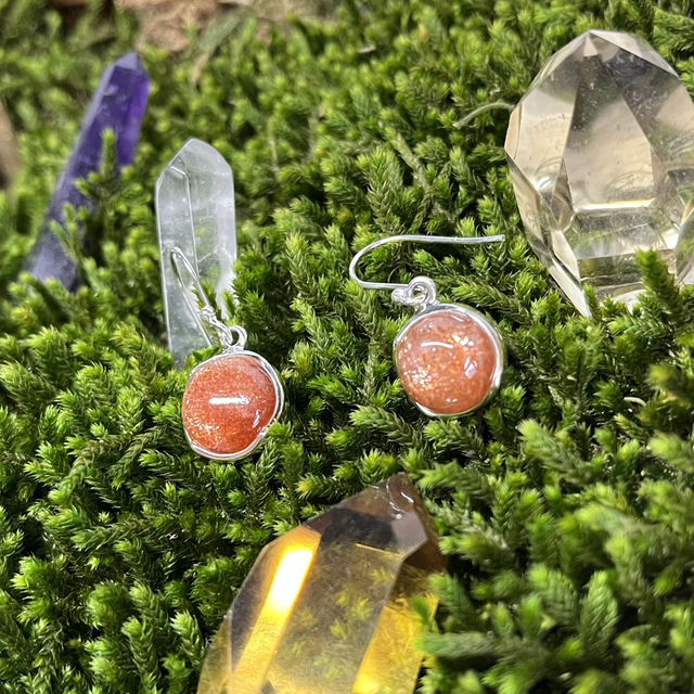 Boucles d’oreille en argent et Pierre de Soleil de haute qualité