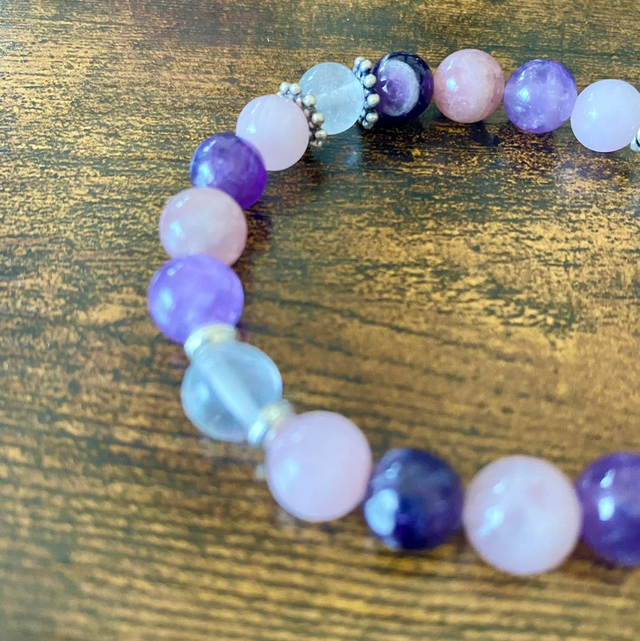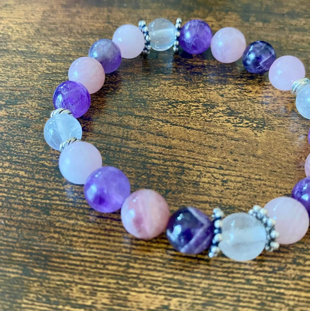 Quartz Rose, améthyste chevron et pierre de lune