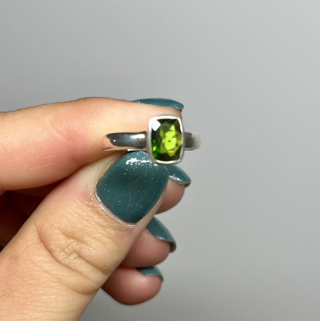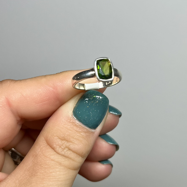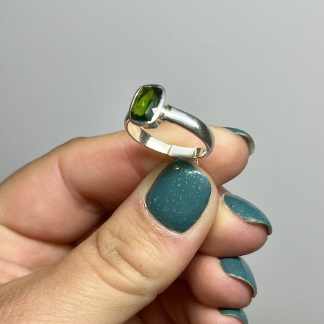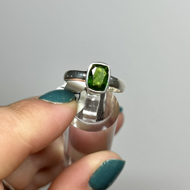 Bague en argent et Chrome Diopside facetté - Taille 56
